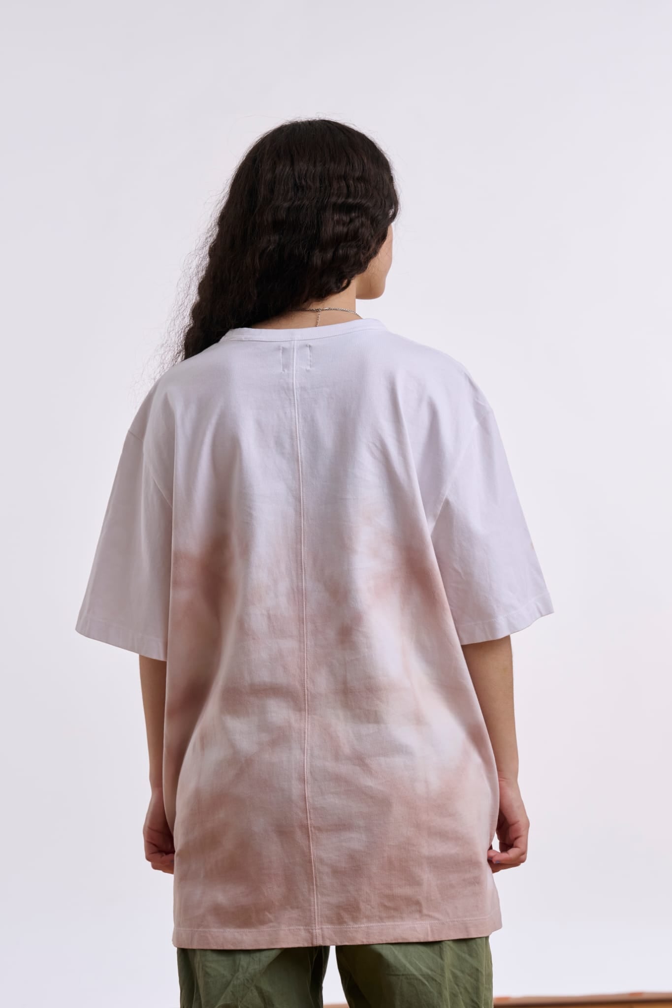 A high-quality cotton t-shirt, uniquely hand-dyed with wine for a one-of-a-kind tie-dye effect.